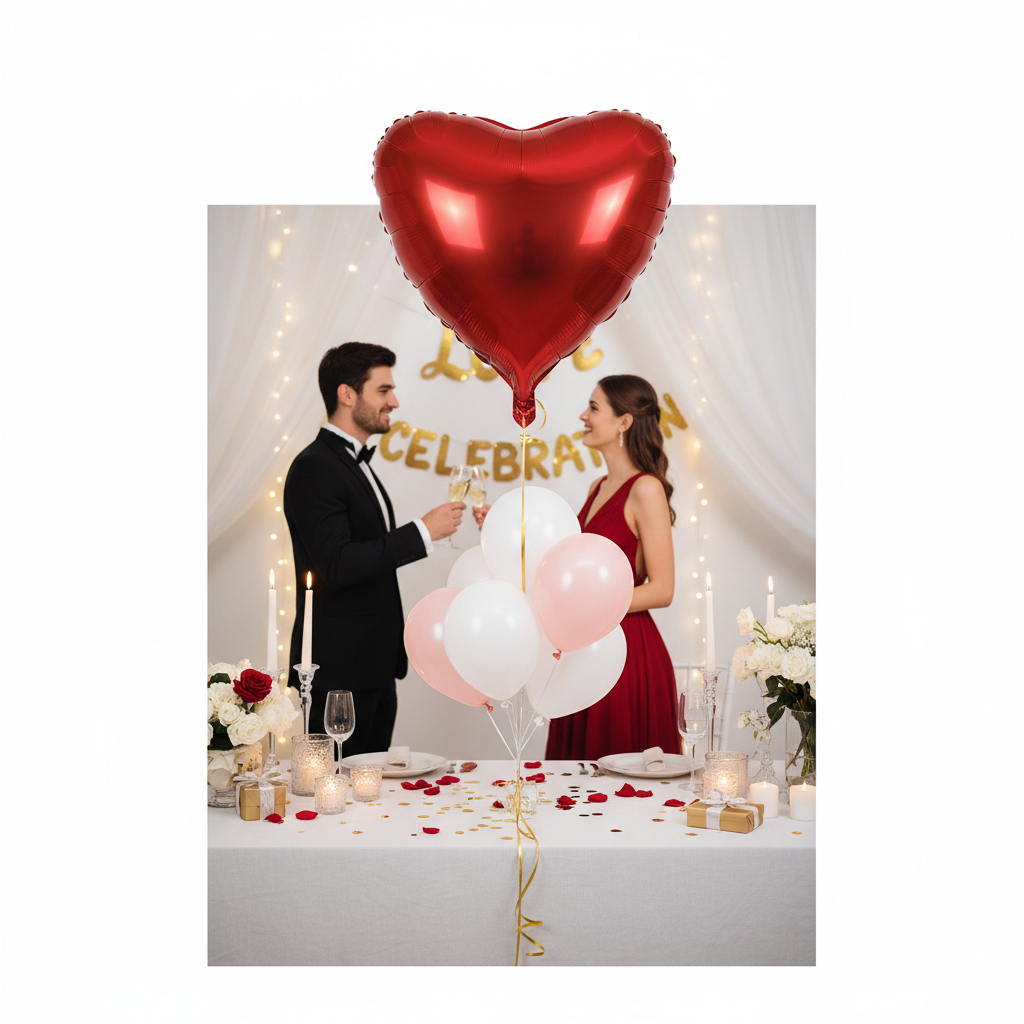 Beautiful red heart-shaped foil balloon perfect for romantic celebrations and special occasions. This vibrant balloon adds a touch of love to any party or event.